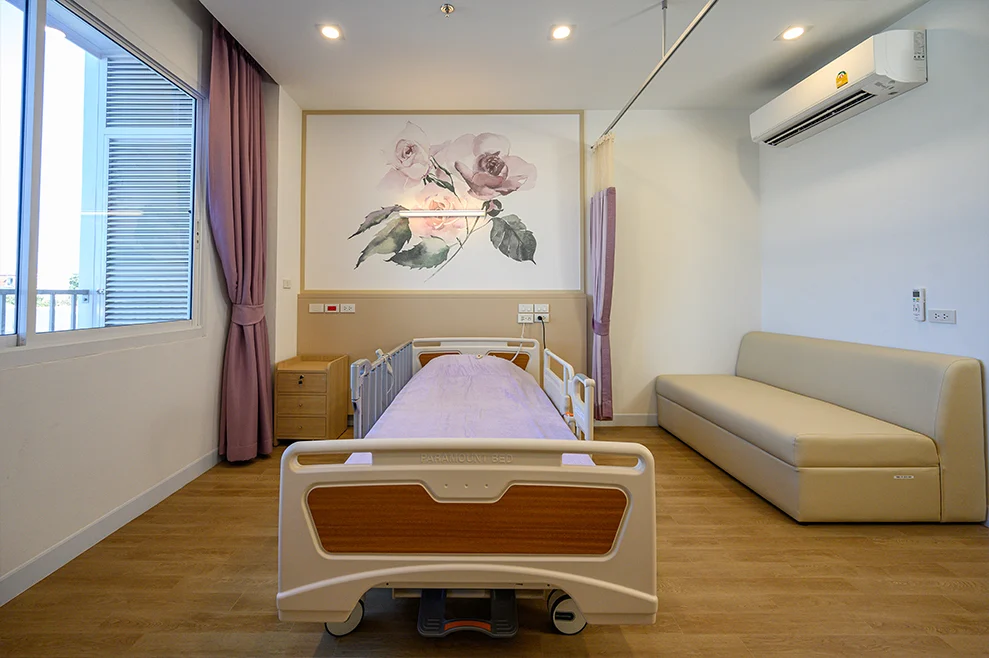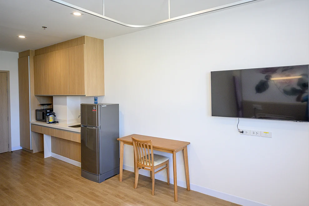 The Essential Standard private room is designed for residents who value privacy while receiving comprehensive, professional care in a safe and comfortable environment. Each room is equipped with an adjustable electric bed that can be lowered to 30 cm and supports CPR functionality, along with an SOS emergency call system to ensure immediate assistance when needed. Residents are cared for by a qualified team of physicians, nurses, and professional caregivers available 24 hours a day.